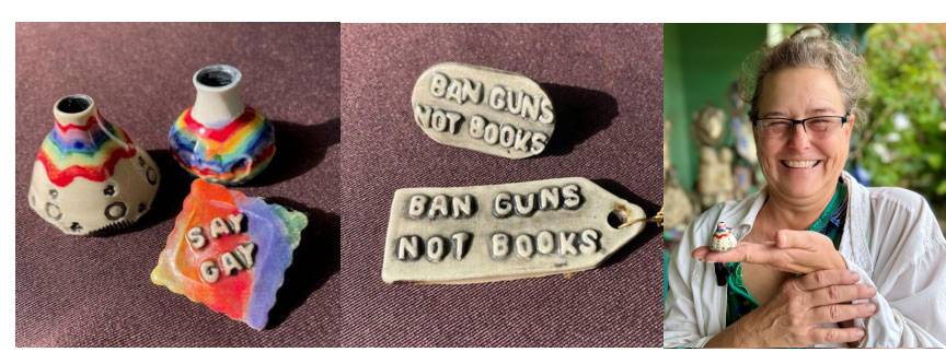 San Diego defines constitutionally-protected “expressive activity” as including “the sale of artwork” as well as “visual art sold by the artist.” But San Diego excludes “handcrafts” from constitutional protection. According to the City, “handcrafts” are “objects made either by hand or with the help of devices” and the City has decided that such “objects [are] not likely to communicate a message, idea, or concept to others, are often mass-produced or produced with limited variation, and often have functional utility apart from any communicative value they might have.” All of Sara’s pieces are original, unique, and expressive works of art. But because many of Sara’s works are made from clay or are mixed media including clay, the City appears to consider them not art, but instead non-expressive “pottery” subject to its vending laws.
